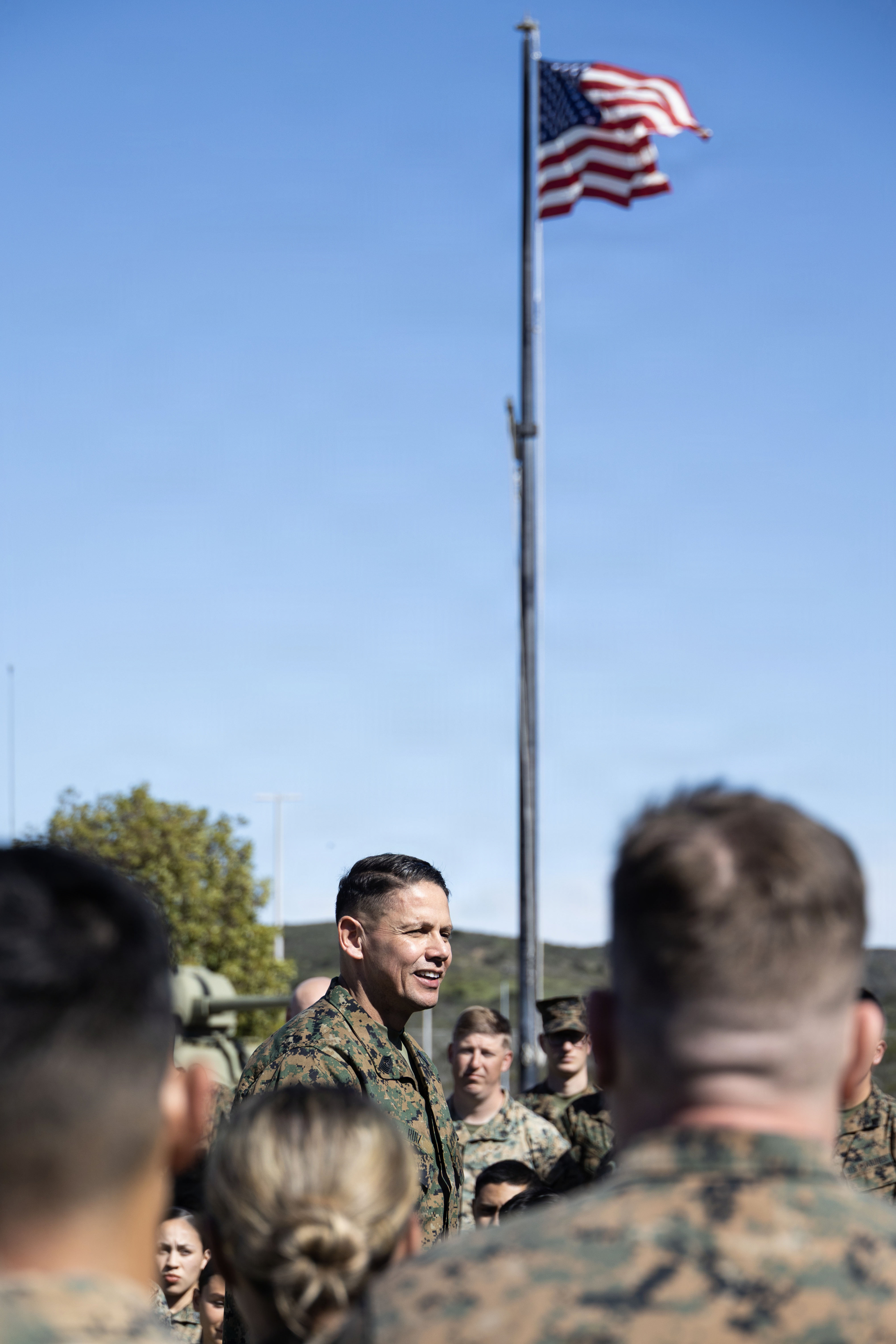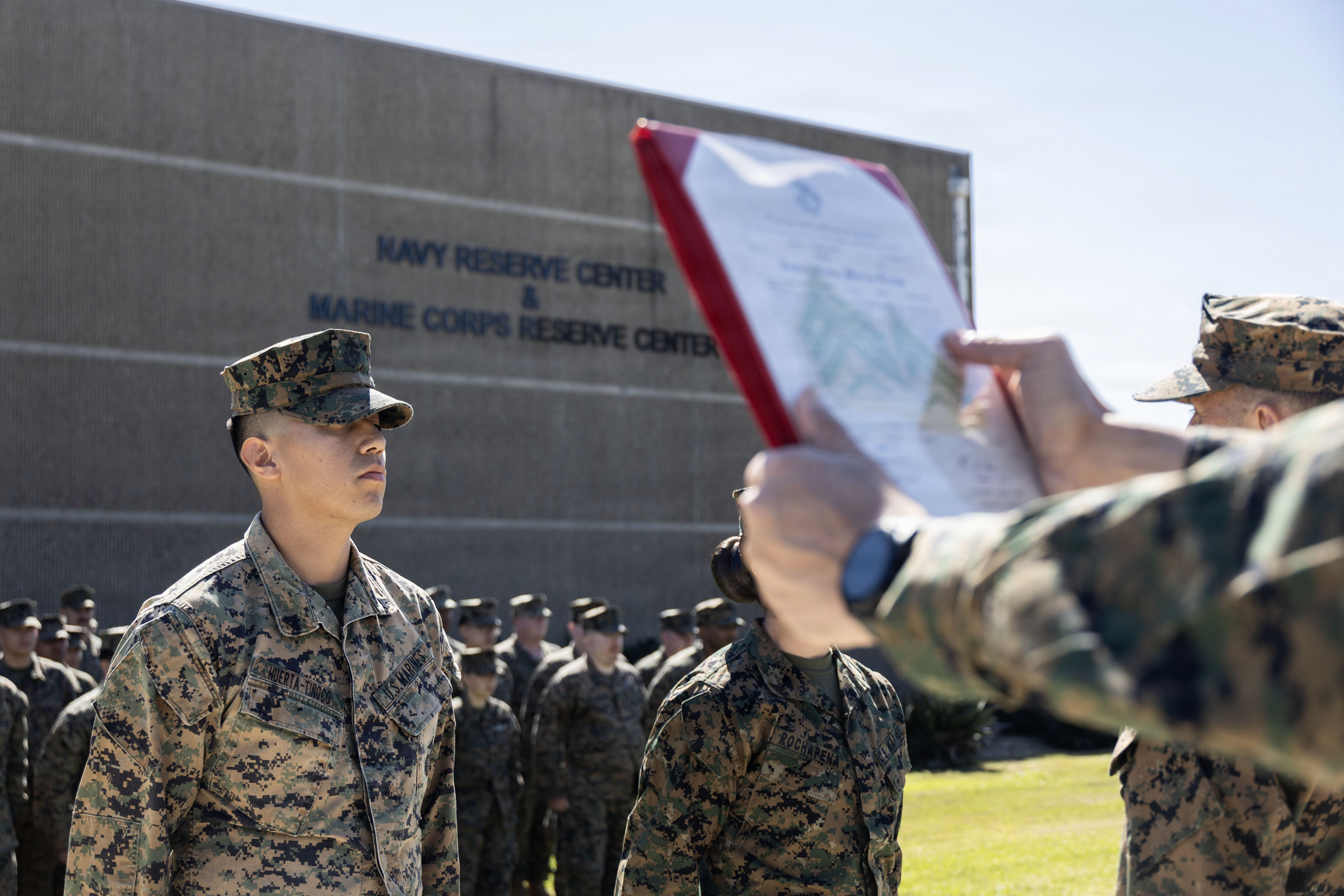 U.S. Marine Corps Sgt. Maj. Carlos A. Ruiz, the 20th Sergeant Major of the Marine Corps, visits Marines and Sailors assigned to 4th Medical Battalion, 4th Marine Logistics Group at the Naval and Marine Corps Reserve Center, San Diego, California, March 7, 2026. Ruiz visited the reserve Marines and Sailors during their drill weekend in order to gain a better understanding of their training. Ruiz also participated as the senior enlisted leader for promotion and award ceremonies. (U.S. Marine Corps photo by Gunnery Sgt. Jordan E. Gilbert)