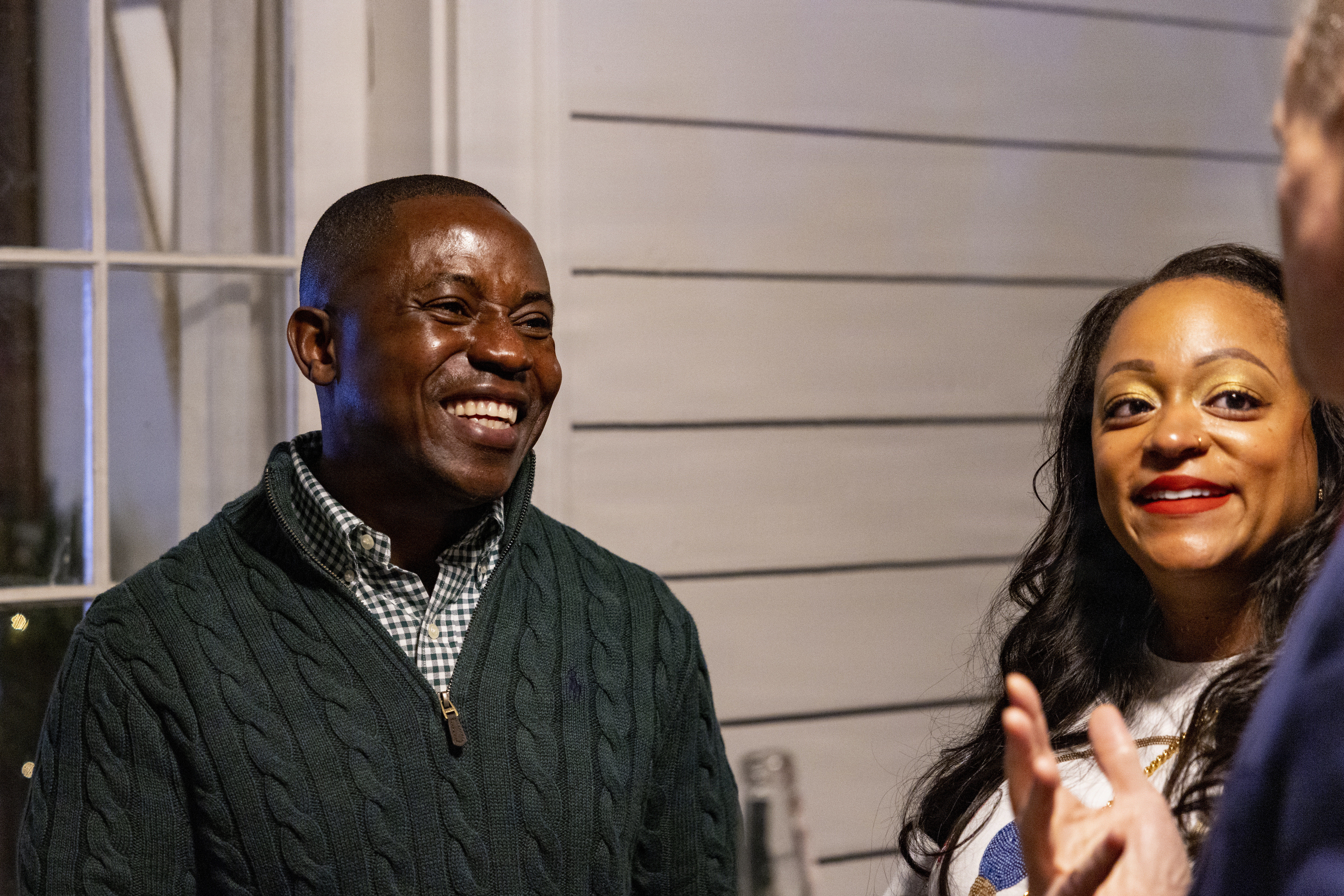 U.S. Marine Corps Sgt. Maj. Kabiru Labaran, command senior enlisted leader, Headquarters Battalion, Marine Forces Reserve and Marine Forces South, mingles with guests at the annual Christmas party held at Quarters A in New Orleans, Dec. 6, 2025. The event supported the Marine Corps Reserve Toys for Tots program, with guests contributing donations throughout the evening, and featured a concert by the Marine Forces Reserve Band as its main attraction. (U.S. Marine Corps photo by Sgt. Samuel Qin)