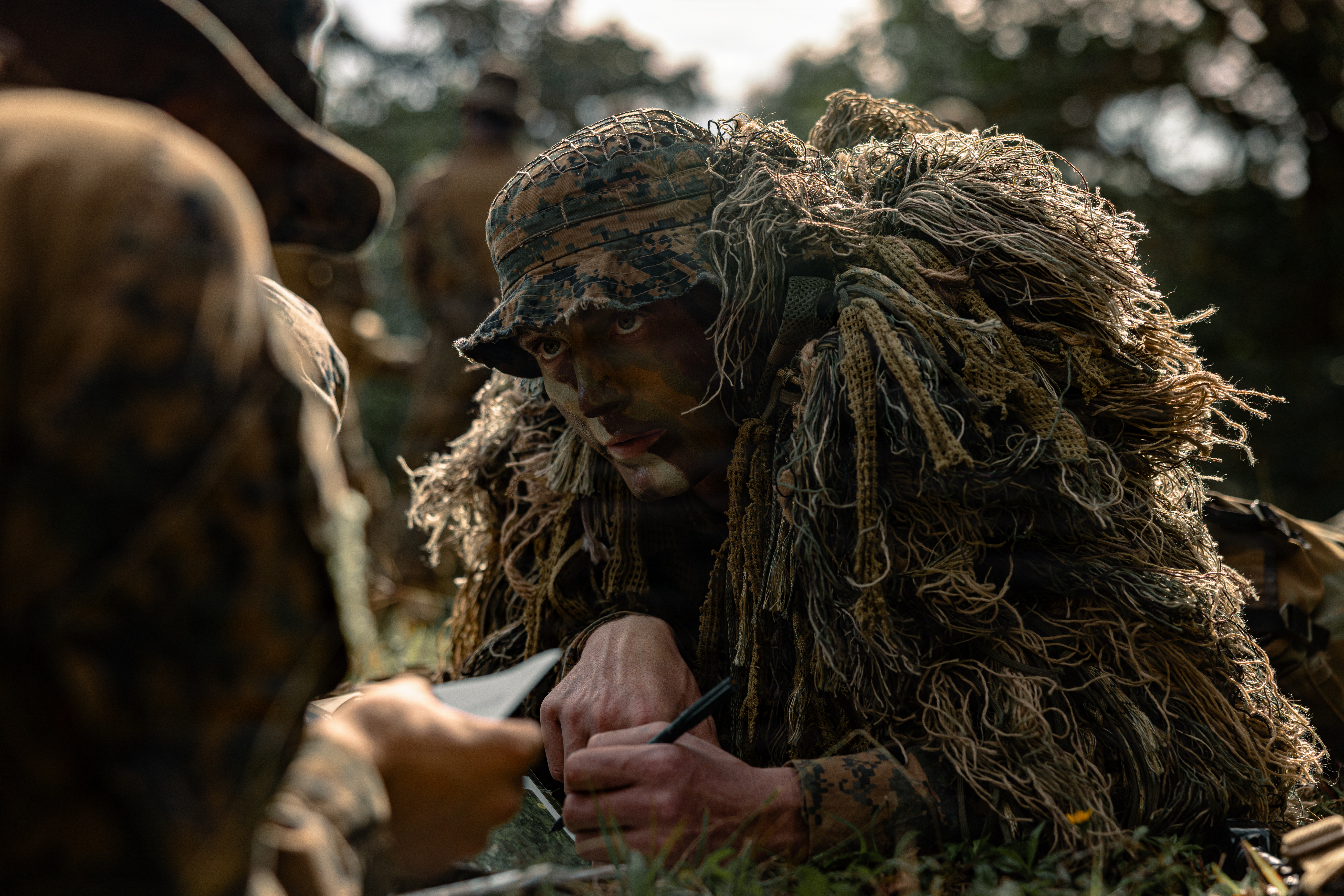 U.S. Marine Corps Lance Cpl. Jeffrey Hollabaugh, a rifleman with 4th Light Armored Reconnaissance, forward deployed with 4th Marine Regiment, 3rd Marine Division as part of the Unit Deployment Program, conducts a land navigation class before their patrol exercise on Camp Schwab, Okinawa, Japan, Jan. 6, 2026. The patrolling exercise was conducted to sustain and improve Marines’ operating skills in disaggregated and contested environments. Hollabaugh is a native of Virginia. (U.S. Marine Corps photo by Cpl. Joaquin Dela Torre)