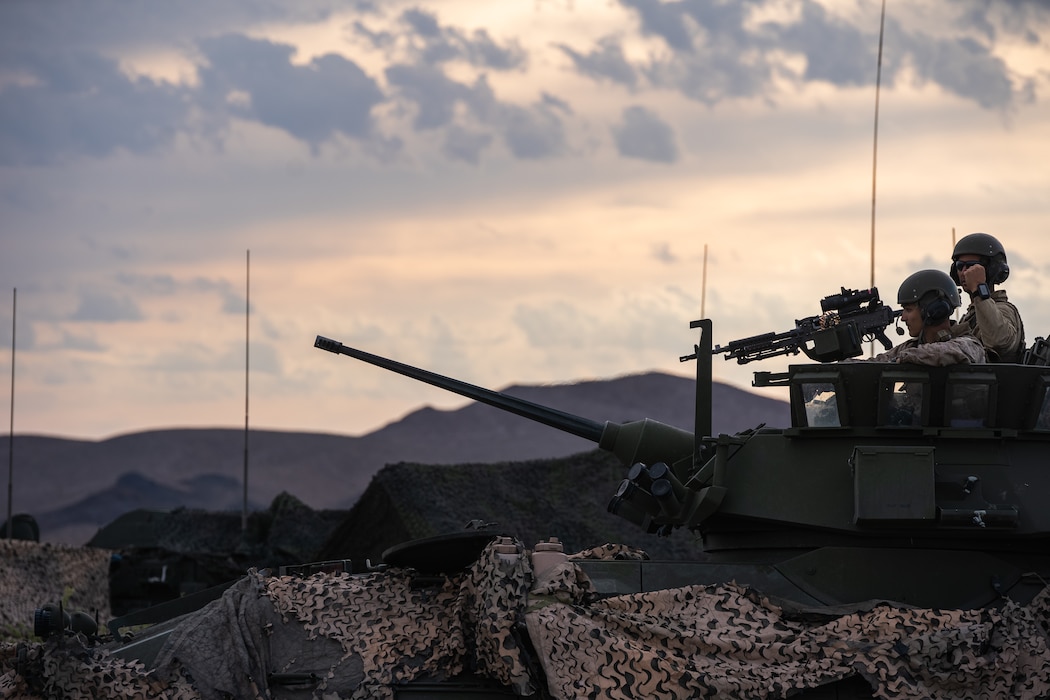 U.S. Marines with 4th Light Armored Reconnaissance Battalion, 4th Marine Division, Marine Forces Reserve, prepare to conduct a rehearsal run during Integrated Training Exercise (ITX) 4-23 at Marine Corps Air Ground Combat Center, Twentynine Palms, California on June 16, 2023. As the Marine Corps Reserve’s premier annual training event, ITX provides opportunities to mobilize geographically dispersed forces for a deployment; increase combat readiness and lethality; and exercise MAGTF command and control of battalions and squadrons across the full spectrum of warfare. (U.S. Marine Corps photo by. Cpl. Ryan Schmid)