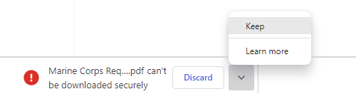 MCEN Users: If prompted with "can't be downloaded securely", right click on the " ⌄ " and select "keep". Document will appear in download folder.